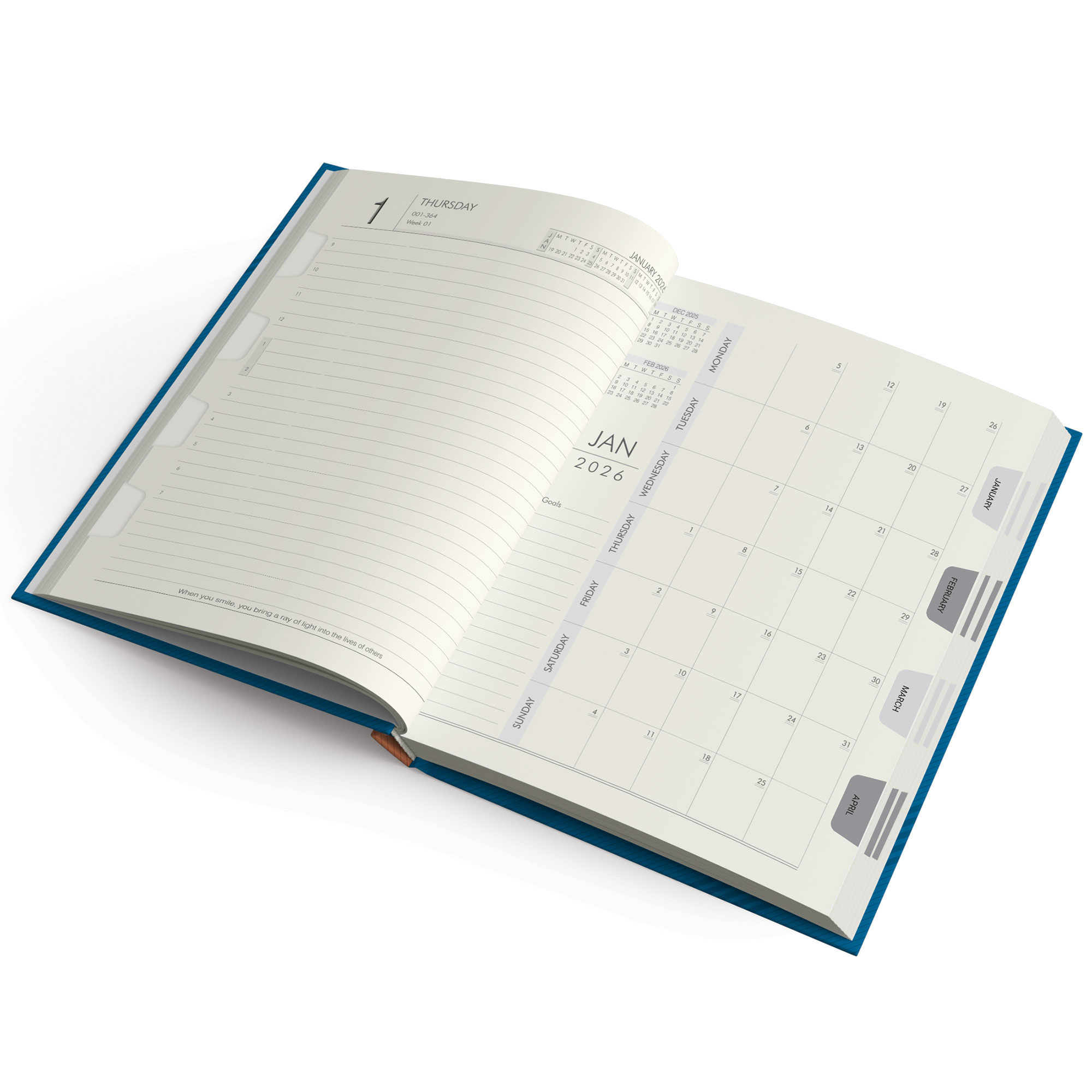 The 177-178 B5 RisePlan Diaries feature a one-date-per-page layout with a planner and month tabbing, designed for smooth and efficient scheduling.